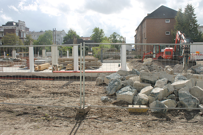 Stand 25.08.18: Keine neuerliche Entwicklung. Der Neubau schreitet voran, die Platte ist weiterhin vorhanden. Wir berichten weiter.