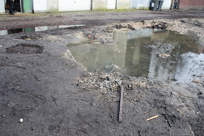 Die abgelagerten Dinge stammen von einer aktiven (!) Baustelle auf der anderen Straßenseite...