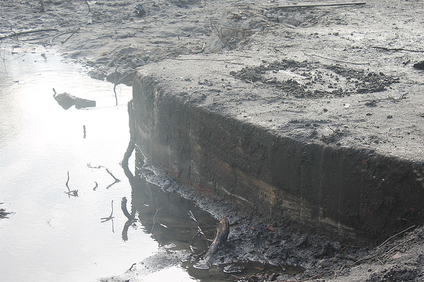 Stand 05.09.17 (!): Die Fundamentplattenbeseitigung war zunächst bis Mitte 2017 vorgesehen gewesen, das Beseitigungszeitfenster ist nun wieder unklar. Im mittlerweile immer mehr zuwuchernden Gelände ist die Platte noch immer vorhanden. Wir berichten weiter.