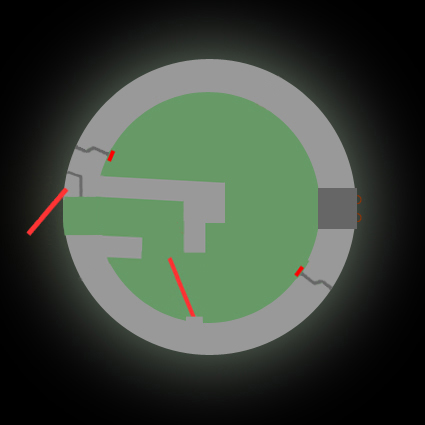 Grobe Darstellung des Grundrisses der Rundturmserie. Die Proportionen der einzelnen Schleusengänge variieren. Beispielsweise die beiden kleinen Rundtürme in der Stadtparkkolonie weisen eine Druckschleuse (Splitterschutzgang) auf, wie hier dargestellt.