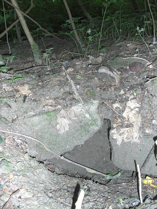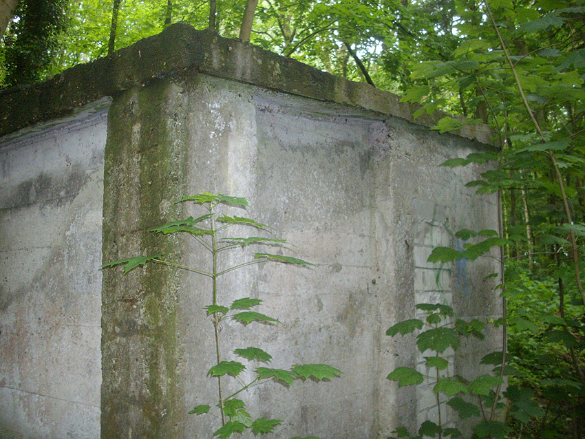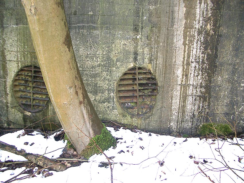 Drei alte Kanalschächte und eine teilzerstörte splittergeschützte Beton-Munitionslagerkiste im Nahbereich der ehemaligen Luftverteidigungszentrale: