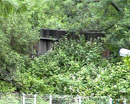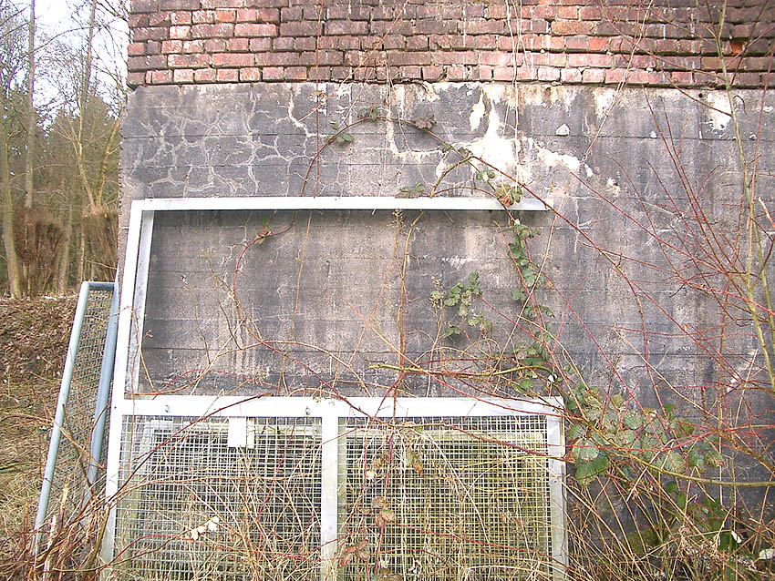 Eines der Leitstandnebengebäude im Stadtpark. Ursprünglich waren drei Gebäude dieser massiven Art und mehrere dazwischenliegende Baracken im östlichen Bereich des Geländes vorhanden, heute existiert nur noch dieses eine Bauwerk, die beiden anderen wurden in den 1990er Jahren entfernt:
