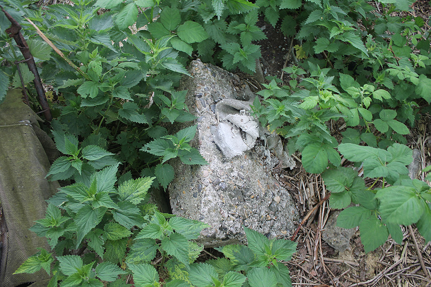 Allerdings ist der erkennbare verwitterte Bolzen / bzw. die Gewindestange nicht annähernd so dick, wie diejenigen der Sockel im Bereich Munitionsdepot.