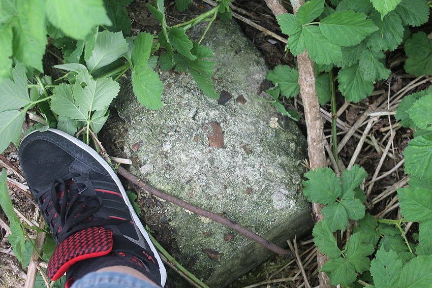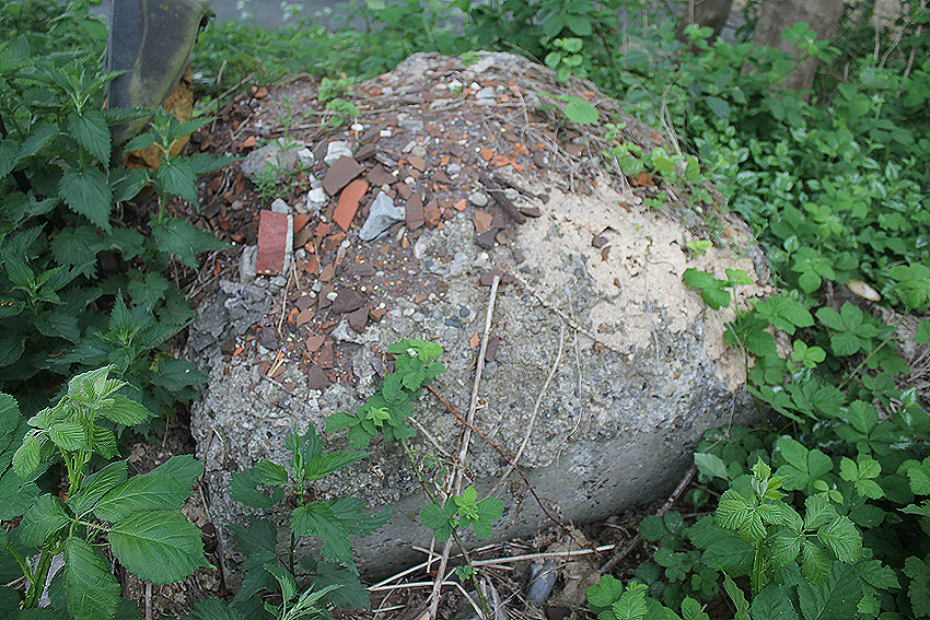 Beton und Mauerwerk einige Meter südlich der Sockelbereiche. Aber wohl Reste der nach dem Krieg hier ansässigen Firma Rottmann: