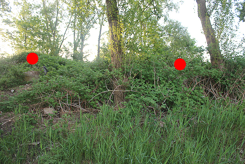 Es wird sich bei diesen Resten höchstwahrscheinlich um die Sockel eines Beobachterturmes handeln (leichte Flak - oder / und Scheinwerferstand) ähnlich wie oft im Bereich Munitionsdepot realisiert. Ob hier am Alten Banter Weg in Nähe zum damaligen Lager jedoch ein solcher Turm jemals auf die Sockel installiert wurde, ist fraglich. Auf 1945er Luftbildern ist nichts in der Art zu erkennen. Der Nordwestsockelrest ist noch gut zu sehen. Gewindebolzen sind eventuell auch hier in den Beton eingelassen worden (hier: Nordwestsockelrest / dies ist aber wohl lediglich ein Bewehrungseisen in geriffelter Ausführung). Reste vom Südwestsockel sind ebenfalls erkennbar. Die beiden östlichen Sockel liegen, wenn sie noch existieren sollten, komplett unter Dickicht. Es dürfte sich - wie erwähnt - mit höchster Wahrscheinlichkeit um Aufnahmen für derartige Türme handeln, auf alle Fälle aber um Relikte des Zweiten Weltkrieges. Eine nach 1945 in dem Bereich errichtete Fabrikationsfirma (mit massiven Fundamentkonstruktionen für die dort dann gebauten Gewerbeanlagen) befand sich (mit Geländebegrenzung einige Meter weiter südöstlich) durchaus ein gutes Stück entfernt. Es handelte sich dabei um die Firma Rottmann, die auch Hallen am nahen Kanalweg, welche bereits vor 1945 errichtet worden waren, nutzte. Davon können die hier vorgestellten Objekte mit aller Wahrscheinlichkeit nicht stammen.