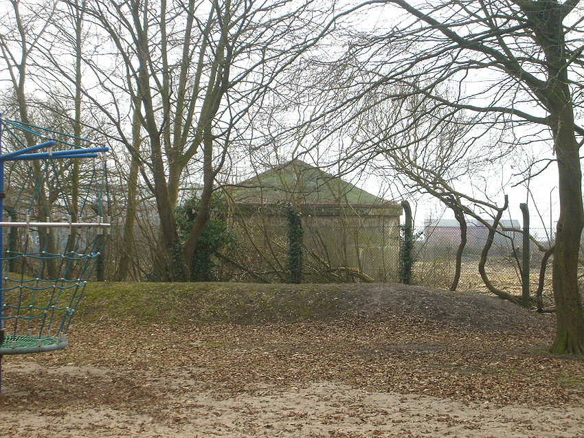 10.12.15: Der Bunker war baugleich zu denjenigen beispielsweise auf der Wiesbadenbrücke oder am Totenweg. Er besaß einen Splitterschutzvorbau im Bereich der später eingebauten "Lüftung". Dort war ursprünglich der Eingang.