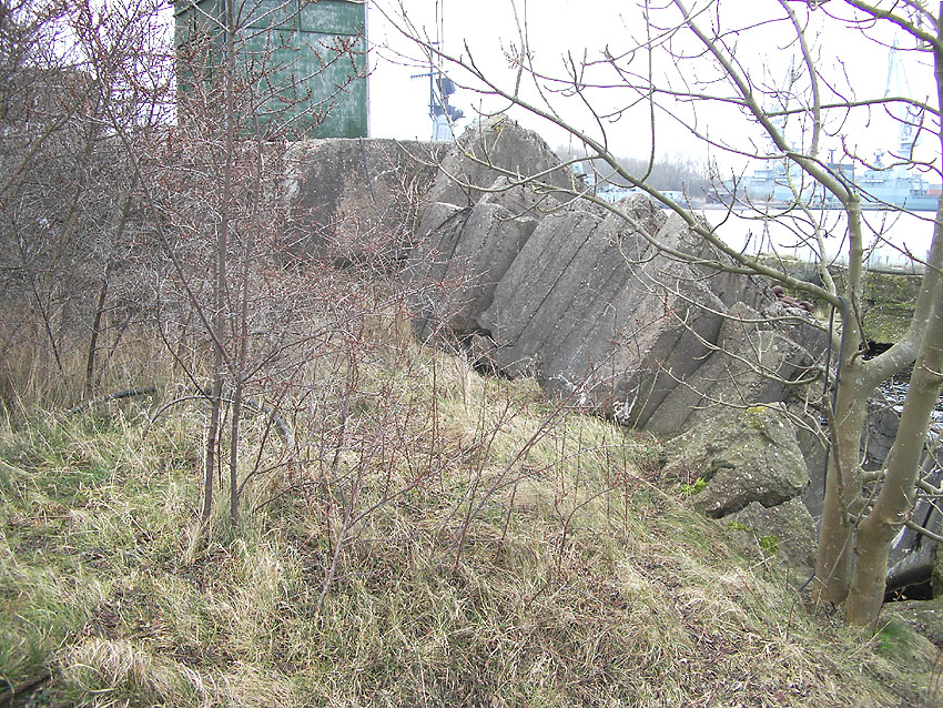 Trümmerstücke des entfernten LS-Turmes Ostkaje. Bisher galt der Turm als gänzlich beseitigt.