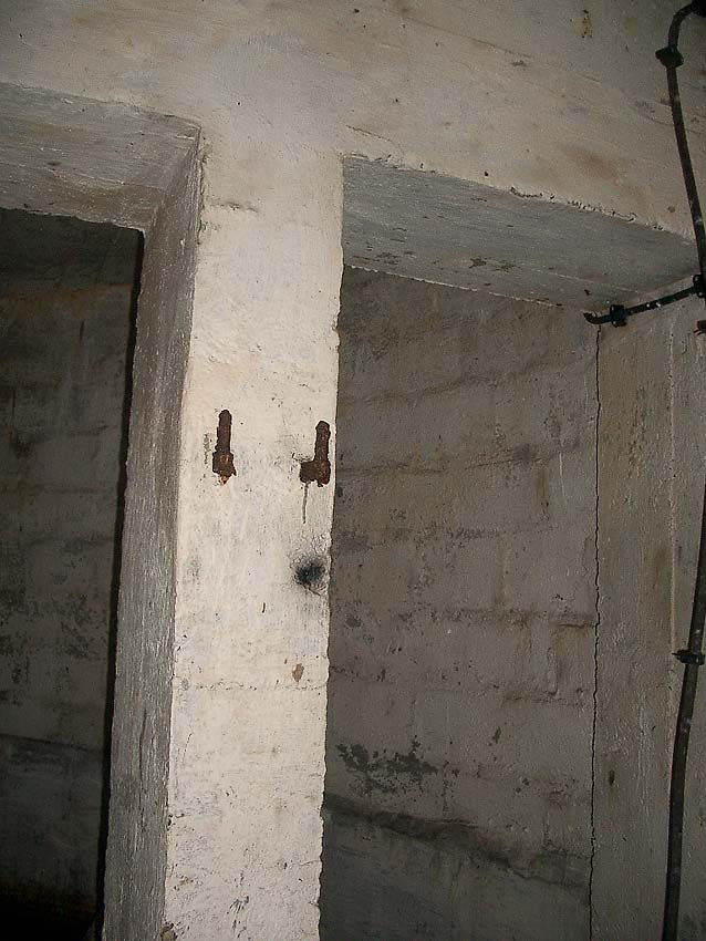 Die Aborte. Im Gegensatz zum Ostbunkerkörper ist hier über den Türen eine gemauerte Wand bis zur Decke vorzufinden. Die Trennwand jedoch wurde nachträglich weggebrochen...