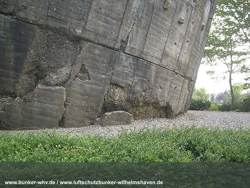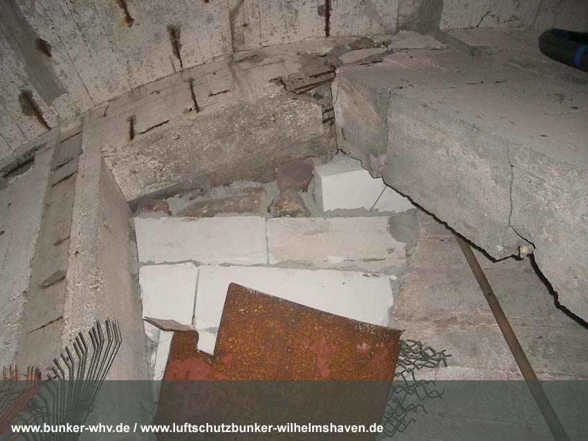Bezüglich des fehlenden Westsplitterschutzvorbaues sind zwei Szenarios denkbar: Entweder wurde er vor den Sprengaktionen bereits entfernt, weil der Turm in die Richtung kippen sollte (siehe dazu auch Sprengung LS-Turm Wilhelmshaven / Mühlenstraße aus gleicher Bauserie), oder aber der Vorbau wurde erst durch die eigentlichen Sprengaktionen zerstört, eventuell durch die Neigung des Turmes dann weggedrückt, bzw. Teile wurden auf die nahe Straße katapultiert und dann logischerweise entfernt. Auch denkbar ist, dass Teilbereiche des Vorbaues noch immer unter Erdgleiche gedrückt / zusammen mit den dort anliegenden Zerschellerplattenbereichen existieren könnten.
