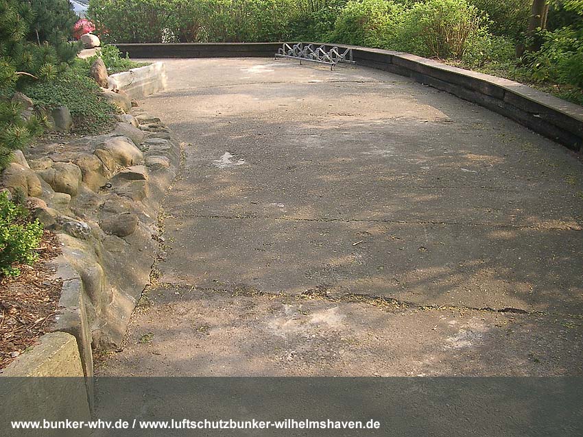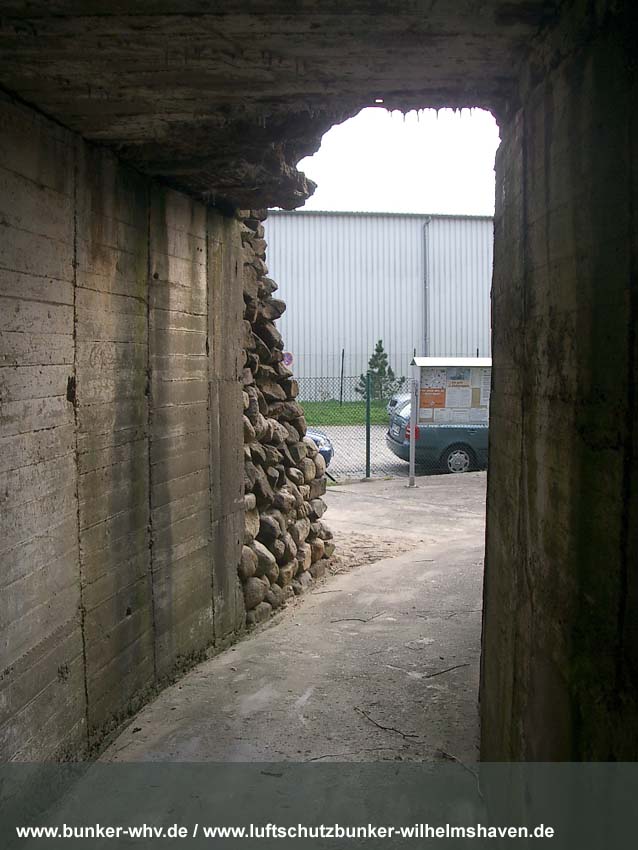 Der Weg durch den Splitterschutzvorbau zum Haupteingang: