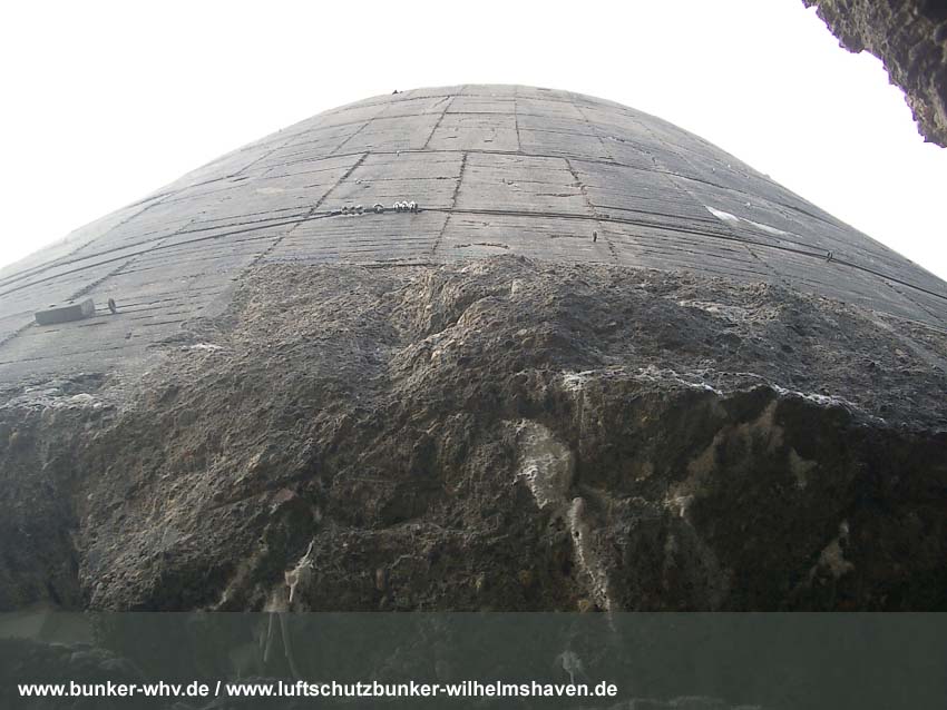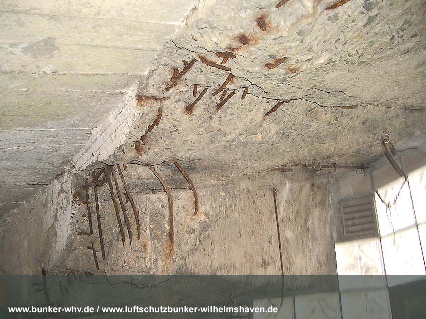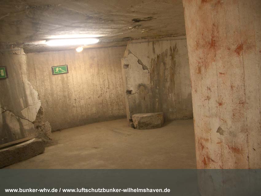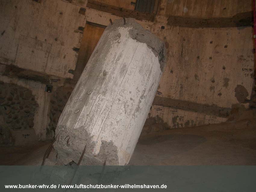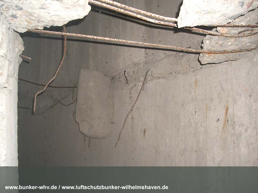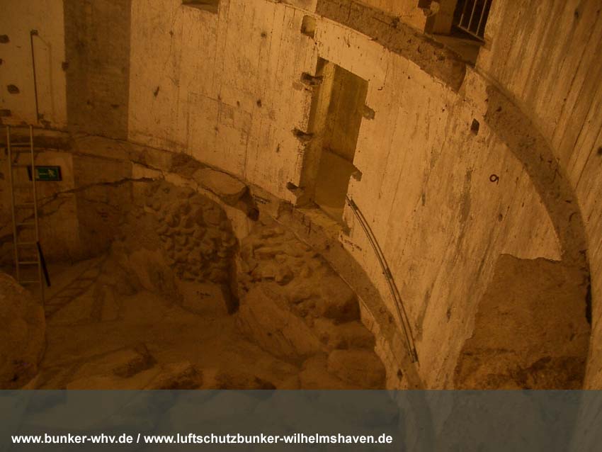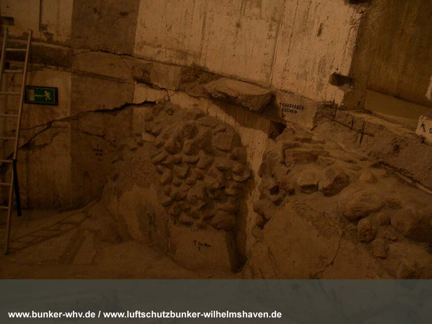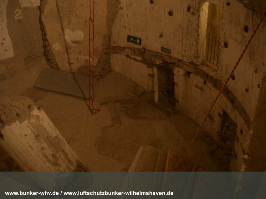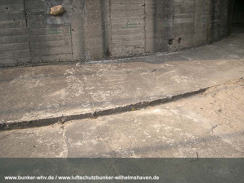 In einem kleinen seitlichen Innenraum, welcher während der Herrichtung vom Alpenverein, dem der Bunker seit 1984 gehört, geschaffen wurde. Schon hier ist die Schräglage erkennbar: