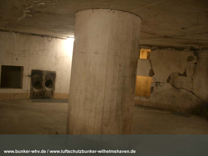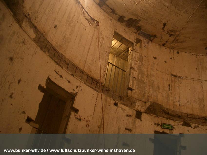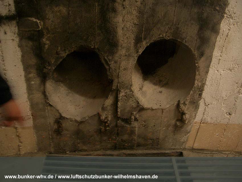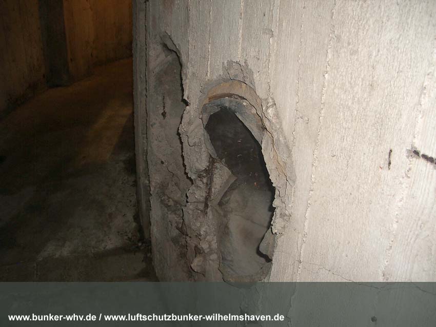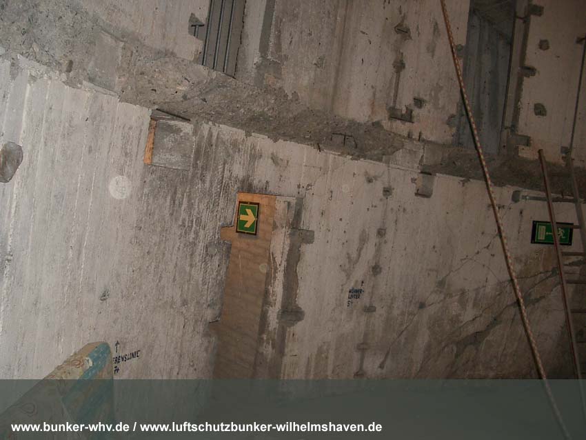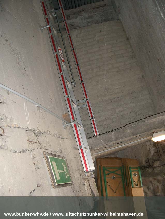 Die Lüftungsschächte des obersten Geschosses von innen in einem kleinen Druckprelltunnel oberhalb des Treppenhausganges. An den Enden des Lüftungsschachtbereiches waren Drucktüren mit Schleusen angebracht, da die Schächte selbst nicht über Schutzklappen verfügten. Dies erklärt, warum die Schächte bei dieser Bauserie nur im Halbrund angefertigt worden sind und nicht vollkommen die ganze Ebene umlaufend. Am Ende des Halbrundes sind jeweils die Schutztüren gewesen, welche im Falle eines Angriffes geschlossen wurden...