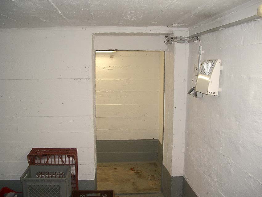 In der Gasschleuse. Blick zum Rahmen der ursprünglichen zweiten (inneren) Schutztür der Schleuse...