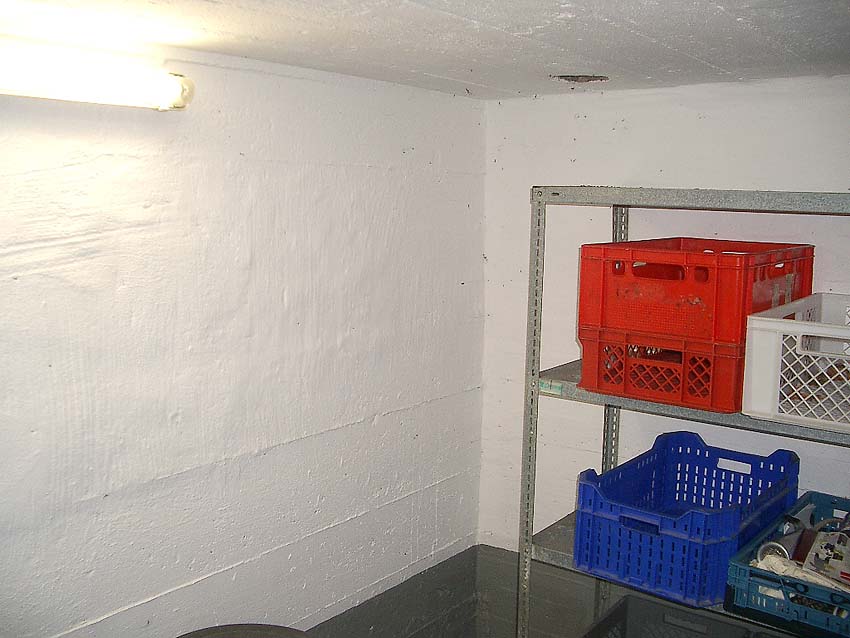 Hier ist zu erkennen, dass kein Materialverbund zwischen Bunker und Gebäude besteht. Dies beweist des weiteren, dass das Gebäude erst nachträglich gebaut wurde...