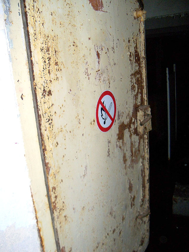 Blick durch die oben erkennbare rückwärtige Tür in den dortigen nach links verlaufenden Vorkeller und den ehemaligen LS-Raum selbst. Dort im Hintergrund links ist wiederum der oben abgebildete Hauptzugang erkennbar: