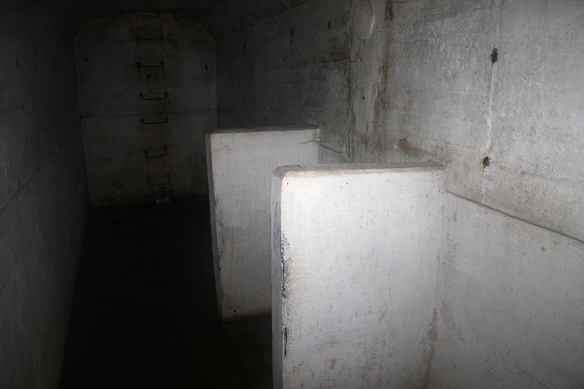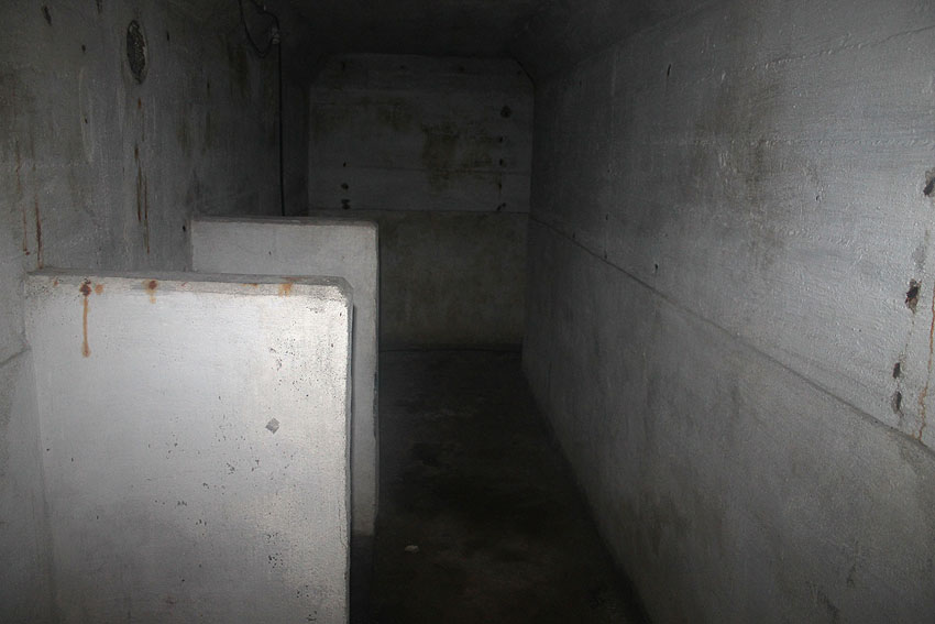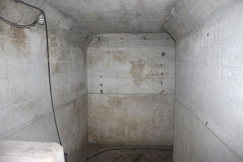 Die Anlage wurde nicht im Verbund mit der Bodenplatte gegossen, sondern getrennt gefertigt, also auf die Platte gesetzt. Boden, Wände und Decken sind im Schnitt mit 50 cm Stärke ausgeführt worden. Beim Abriss des Bauwerkes wurden am 7. September im inneren L-Knick-Bereich an der Außenwand unter der Erde das umgekippte Unterteil des Notausstiegsturmes...