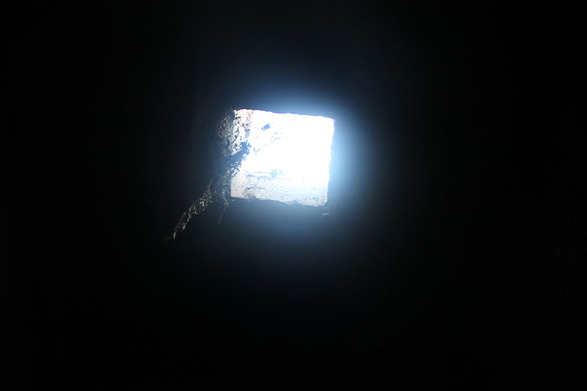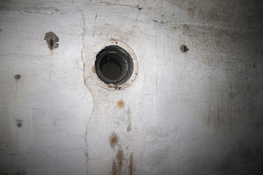 Im Inneren dieses Unterteiles des Notausstiegsturmes wird sich ursprünglich mindestens ein Steigeisen befunden haben, dessen Rest noch erkennbar ist (siehe weiter unten) - eher aber zwei. Dieses bzw. diese werden in den Jahrzehnten großteilig weggerostet sein.
