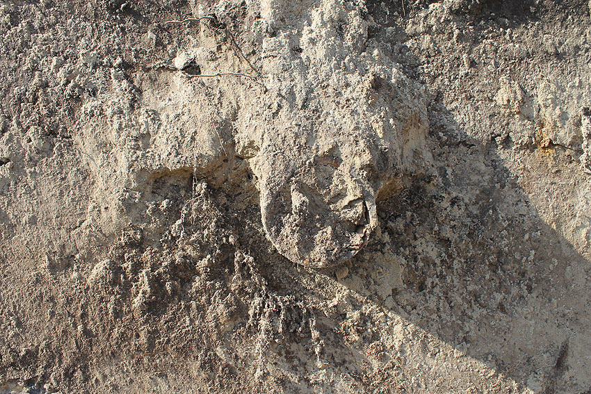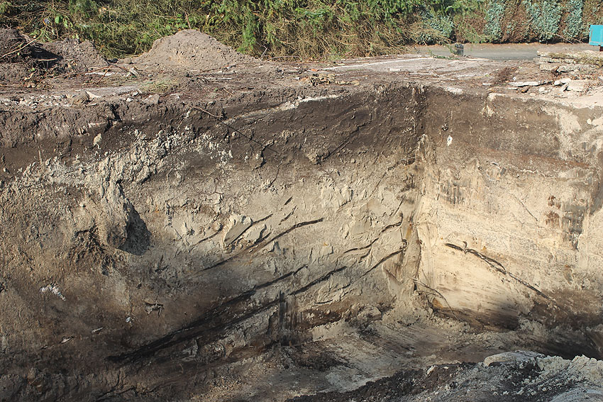 Der um das Bauwerk herum befindliche feine Sand wurde damals während der Errichtung angefahren, um hier eine "Lockerung" des Erdreiches herbeizuführen / Verdämmungseffekt - Druck bei Nahtreffer. Dies ist bei vielen Deckungsgräben derart durchgeführt worden.