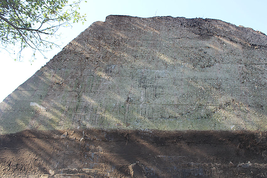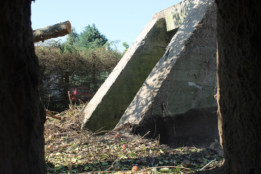 - Die Elemente müssen irgendwann in den 1980er Jahren neben das Bauwerk unter die Erde verbracht worden sein. Die beiden kleineren Trümmerstücke könnten Fragmente des Oberteiles vom Notausstiegsturm darstellen.