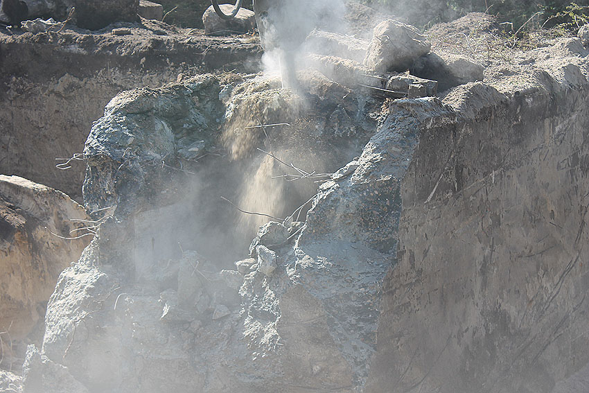 Links unten noch ein Trümmerstück, mittig der vermutete "Hauptlüftungsturm"...