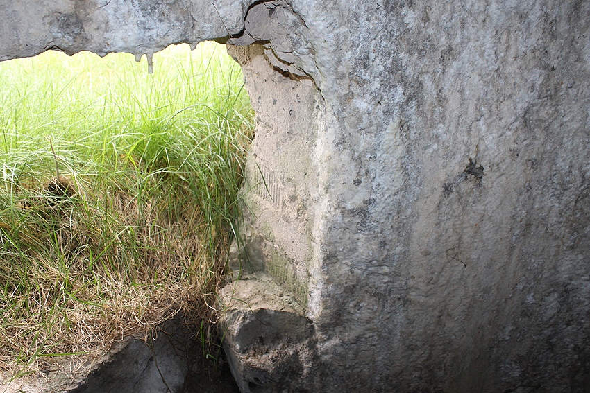 Dies wird entweder der Rest des Notausstiegsblockes sein, wenn er denn aus Beton war und keine Stahlklappe eingebaut war, oder aber es wird ein Rest der vermuteten Mittelsäule sein.