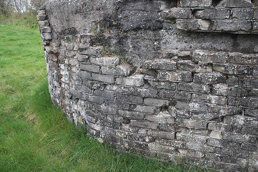 Der Betonkörper des Bauwerkes ist (wie viele andere Rundschutzbauten dieser Art ebenfalls) mit einer Mauerwerkschicht umkleidet worden. Die Mauerwerkschicht außen diente auch als "Puffer" im Falle eines Nahtreffers (Splitter).