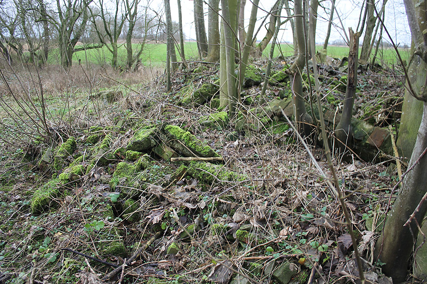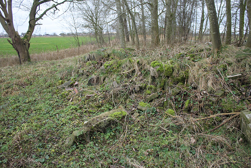 In Bohnenburg südlich von Hooksiel befinden sich an der Bohnenburger Reihe diverse Trümmer. Teilweise aus Beton, teilweise aus Mauerwerk. Diese historische Straße war eine der Zuwegungen zum nicht mehr existenten Dorf Inhausersiel, welches in den 1970er Jahren aufgrund Industrieansiedlung abgerissen wurde. Auch an der Bohnenburger Reihe standen Gehöfte, die teilweise für dieses Vorhaben mit abgebrochen wurden. Auf dem Gelände des ehemaligen Hofes Nr. 12 befindet sich ein kleines Trümmergebiet mit zwei markanten, sehr massiven Schornsteinen, welche umgekippt sind. Zudem sind Stahlträger im Bereich einer eingestürzten Decke zu sehen. Solche Schornsteine sind auch als Lüftungstürme von Splitterschutz-Luftschutzbauten weit verbreitet realisiert worden. Könnte es sich bei den Trümmern um einen zerstörten Deckungsgraben mit Wänden großteilig aus Mauerwerk handeln?
