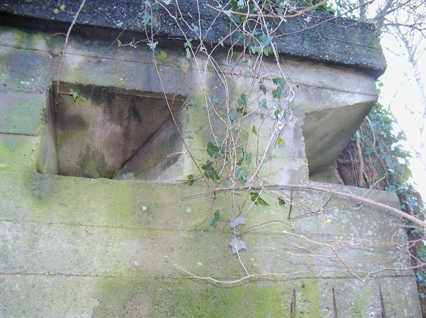 Am hier nicht ersichtlichen rückwärtigen Bereich des Westsplitterschutzvorbaues befindet sich ein heller Kreis, war hier ein ROTES KREUZ (wie am westlichen Rundbunker - Bilder folgend) angemalt?