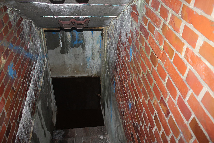 Es geht zunächst im Eingangsbau nach unten, dann nach links in die Schleuse, die mit zwei Türen gesichert war. Dahinter liegt nach rechts abgehend der Hauptraum, der sich komplett unter Erdgleiche befindet. Die Sitzgelegenheiten im Inneren waren im Gegensatz zu anderen Bauten dieser Art aus Stein gemauert. Heute steht das Objekt unter Wasser und dient seit etwa 2011 als Fledermausquartier.