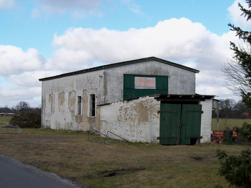 Der nahegelegene ehemalige Lokschuppen der Munitionsbahn vom und zum unweit entfernten Einsatzhafen Marx, für den das Depot angelegt worden war...