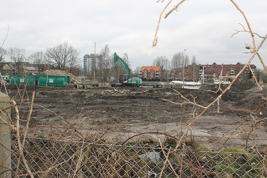 Nachtrag 14. Februar 2018 zum Objekt 2: Das westliche beider "Quadrate" bestand aus zwei nebeneinander gesetzten massiven 3,50 Meter tiefen Betonquadern (unbewehrt). Der Bereich wurde am 7., 8. und 9. Februar 2018 abgebrochen. Eventuell handelte es sich dabei um eine Art Fundament für einen Lastenkran. Vielleicht sogar um eine Art Schwerbelastungs-Testkörper?