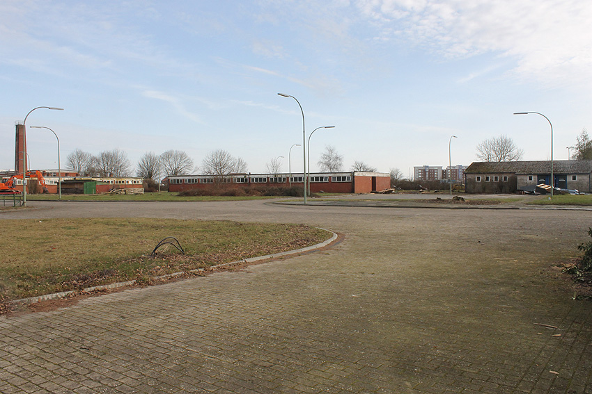 Auf dieser Fläche am Westbeginn der Wiesbadenbrücke befand sich die historische Baracke, die bereits vor einigen Wochen entfernt wurde. Diese Baracke wurde früh nach Kriegsende an der Stelle einer Ursprungsbaracke errichtet, die teilweise abgetragen worden war, deren Mittelbereich allerdings aber in den "Neubau" der frühen Nachkriegszeit integriert worden ist.