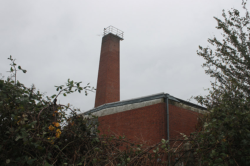 Der nahe am Bunker befindliche charakteristische Schornstein des ehemaligen Heizwerkes ist gestern gefallen.