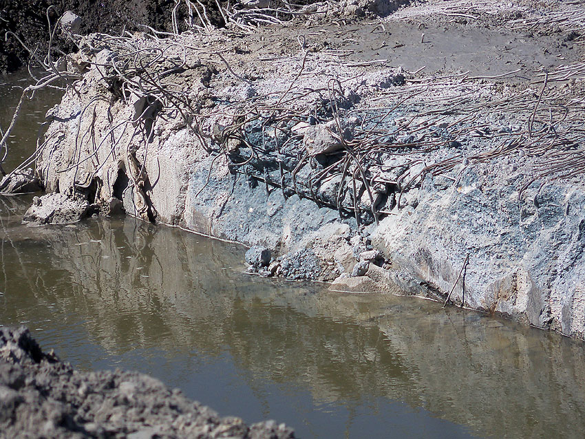 Tank 2: Hier zu sehen die Leitungen im Tank. Dessen äußere Öffnungen sind mit Schlick verstopft: