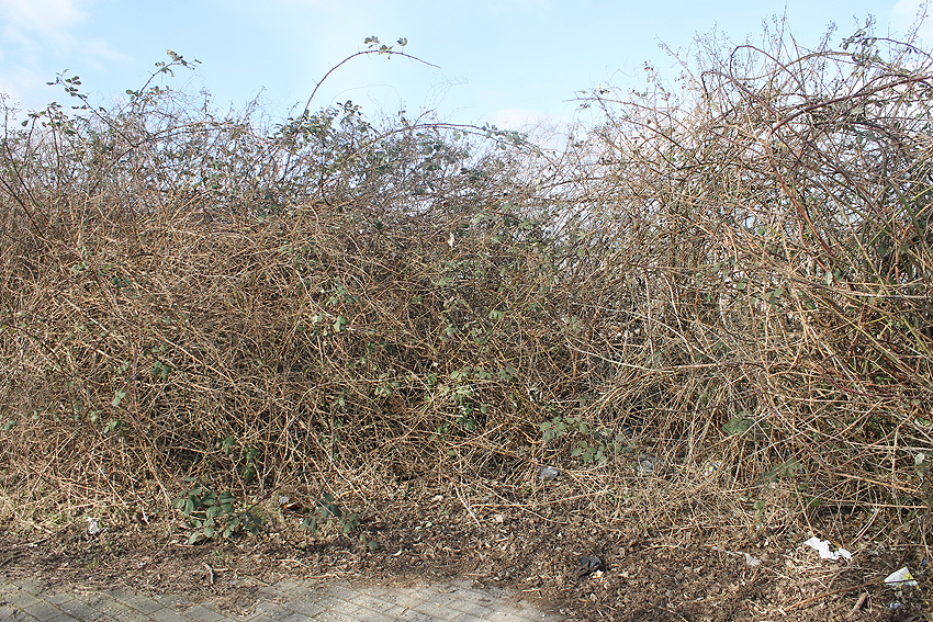 Im mittleren (1x) und östlichen Bereich (2x / nebeneinander) des Zaunes der Südbegrenzung des BW-Bereiches gab es insgesamt drei Südtore. Hier ist das erste im Mittelbereich fast völlig zugewachsen zu sehen.